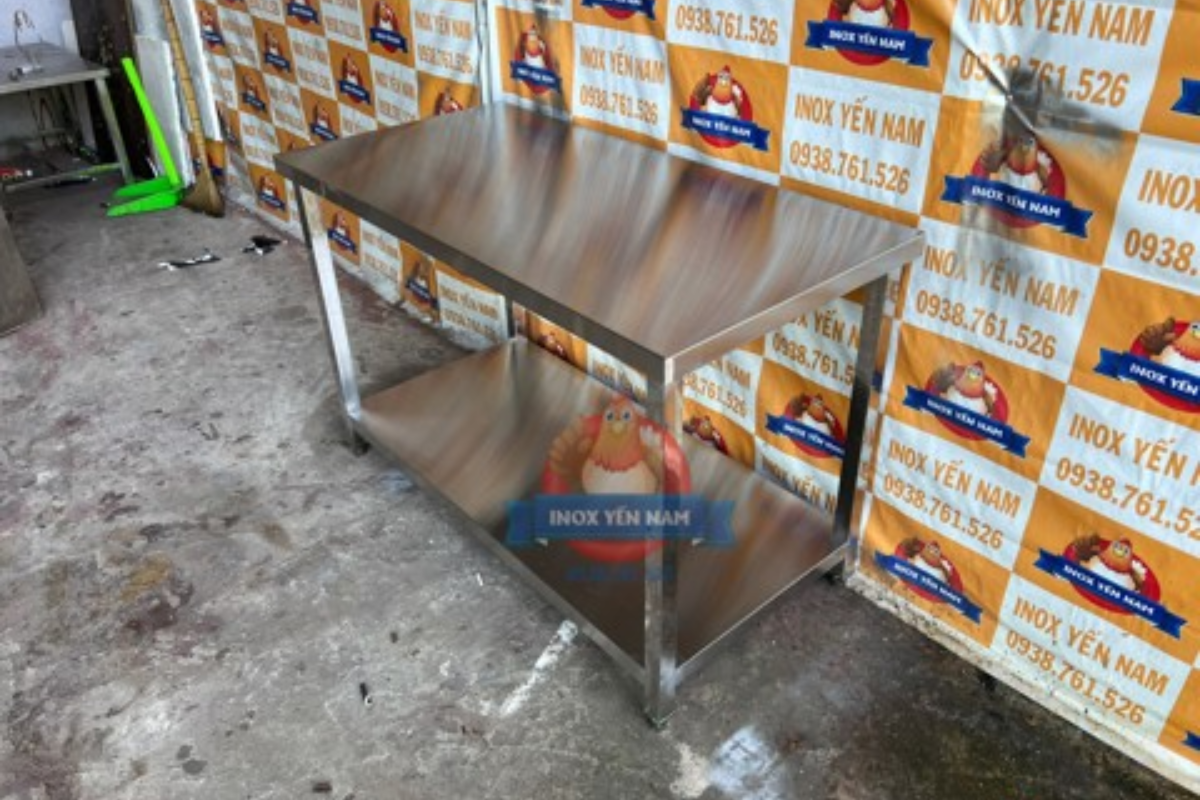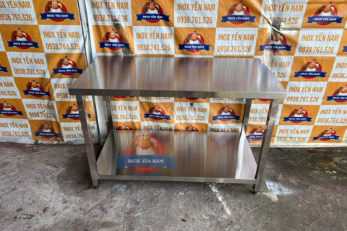 Bàn inox 2 tầng dựng 1268 inox ngày càng phổ biến cho mọi người. Bàn inox cũng được nhiều người lựa chọn để sử dụng trong các lĩnh vực bếp của nhà hàng, khách sạn, căn tin trường học,... sản phẩm thường dùng để làm nơi ra đồ, bổ sung tích trữ các dụng cụ nhà bếp, nguyên liệu,...
